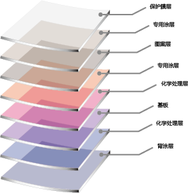 轉印膜印刷采用網點印刷(分辨率達300dpi),將圖案預先印在薄膜表面,印刷的圖案具備層次豐富、色彩鮮艷等特點,能達到設計圖案者的要求效果,并且適合大批量生產。